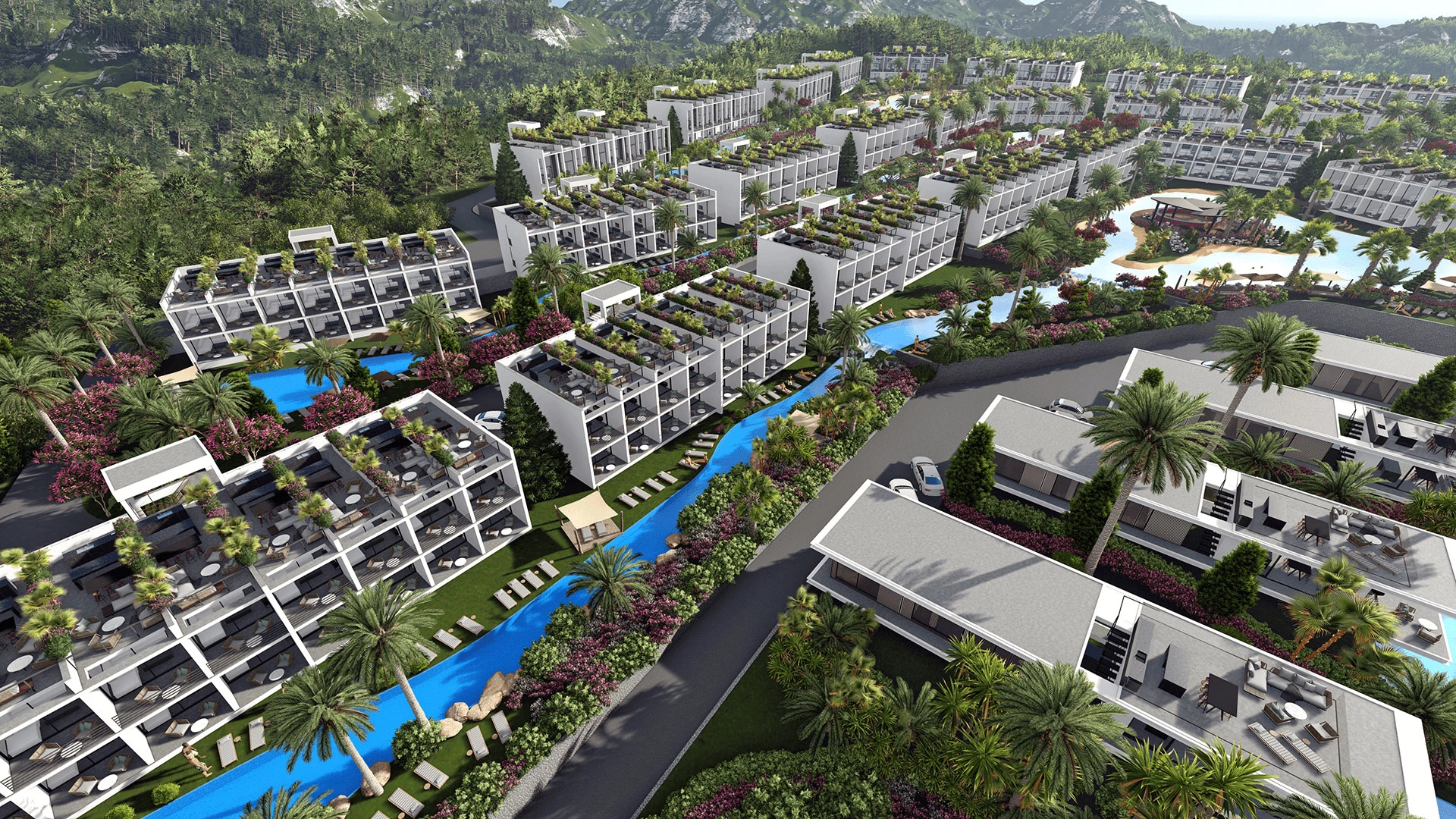 Hawaii evleri, stüdyolar, 1+1, 2+1 loft çatı katları ve toplam 500 üniteli 3 yatak odalı lüks villalarla Kıbrıs inşaatlarının en büyük deniz kenarı konut projesidir. Denize uzaklığı 300-400 metre olan projede yapay nehirler, göller, ve adalar ünlü bahçe tasarımlarımızın da eklenmesiyle site geneline yayılmıştır. Tesis bünyesindeki olanaklar arasında ısıtmalı kapalı havuz, spa merkezi, restoran, bar, spor salonu, basketbol ve tenis kortu bulunmaktadır. Projenin 2025 yılı sonunda tamamlanması planlanıyor.Hawaii Homes’ta 3 mülk türü bulunmaktadır.